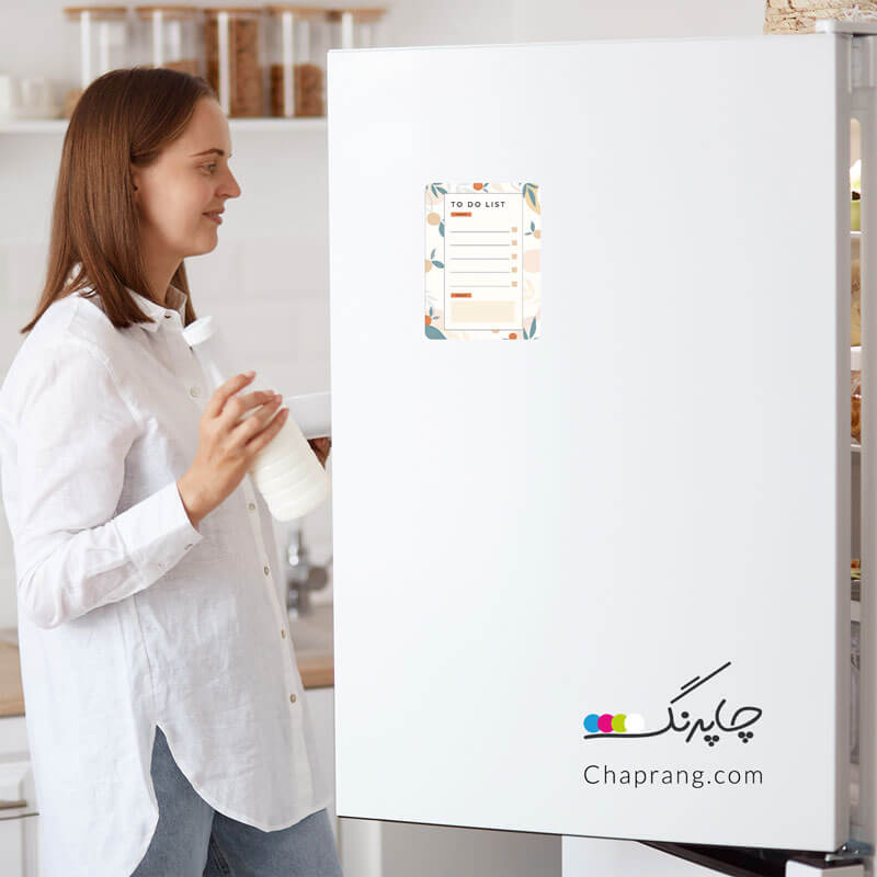 این محصول را میتوانید روی یخچال یا هر سطح فلزی دیگر متصل کنید و لیست کارهای روزانه خود را روی آن بنویسید. برای این کار از یک ماژیک وایت برد یا ماژیک نقاشی استفاده کنید. متن نوشته شده به راحتی با دستمال پاک میشود.