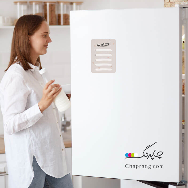 این محصول را میتوانید روی یخچال یا هر سطح فلزی دیگر متصل کنید و لیست کارهای روزانه خود را روی آن بنویسید. برای این کار از یک ماژیک وایت برد یا ماژیک نقاشی استفاده کنید. متن نوشته شده به راحتی با دستمال پاک میشود.